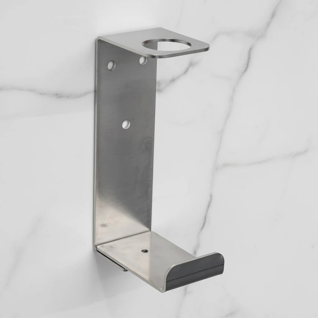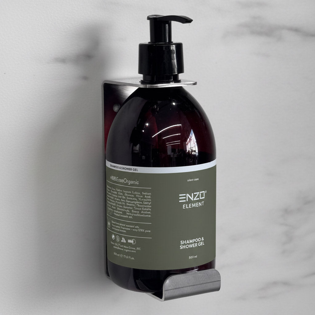 Tvirtas, šlifuoto nerūdijančio plieno laikiklis, sukurtas 500 ml ENZO produkcijos plastikiniams buteliams.
