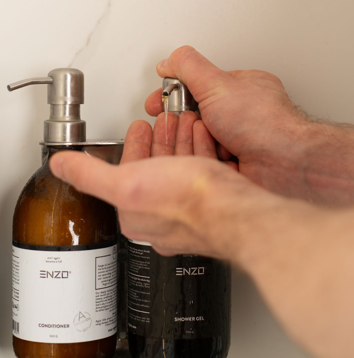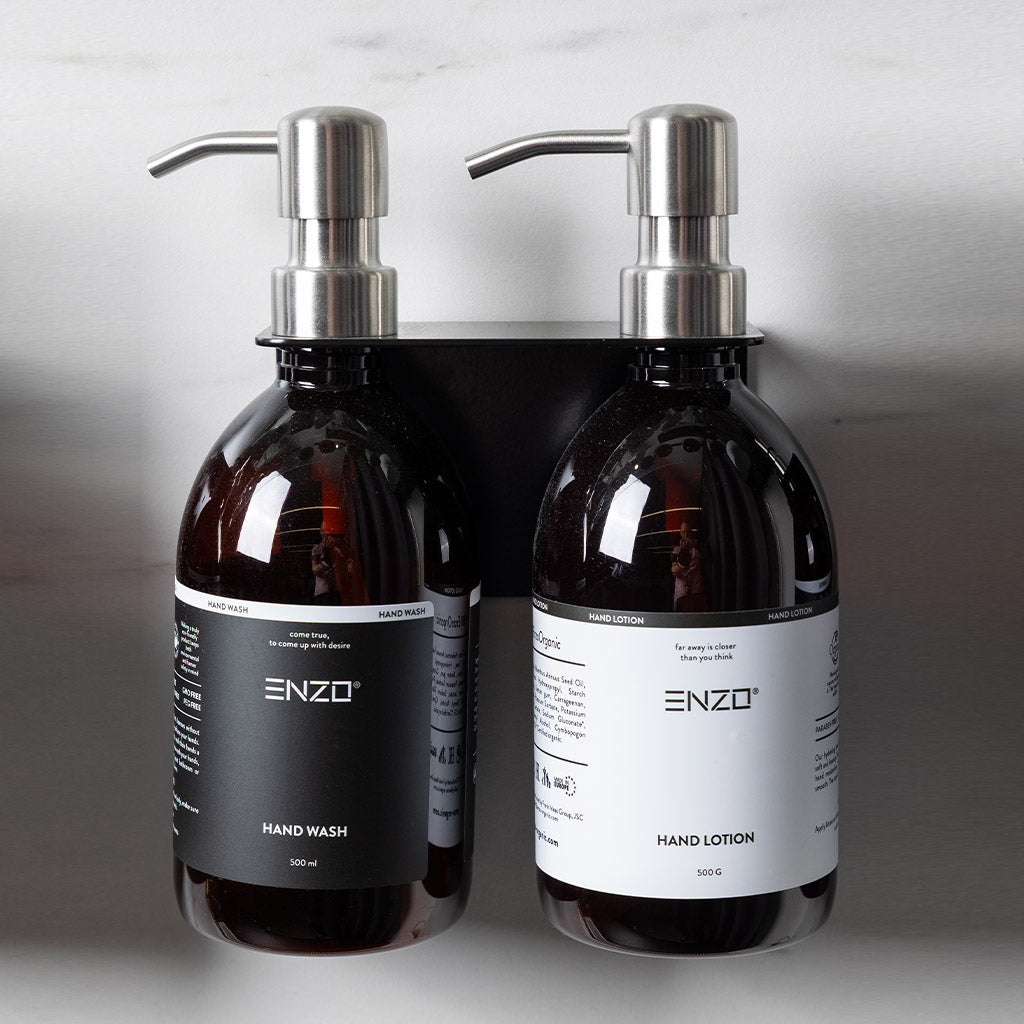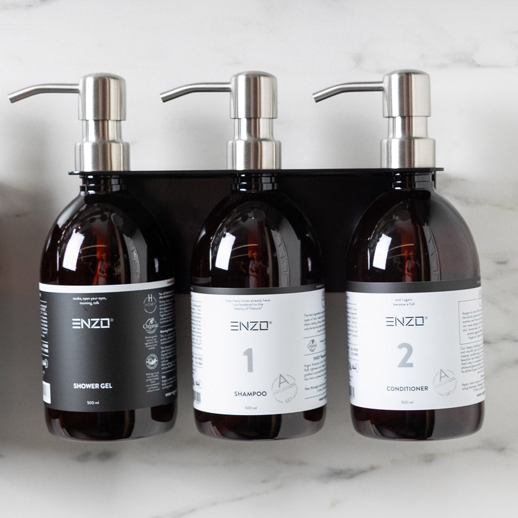 - Galima sumontuoti du arba tris ENZO produktus (šampūnas, dušo želė, kondicionierius)