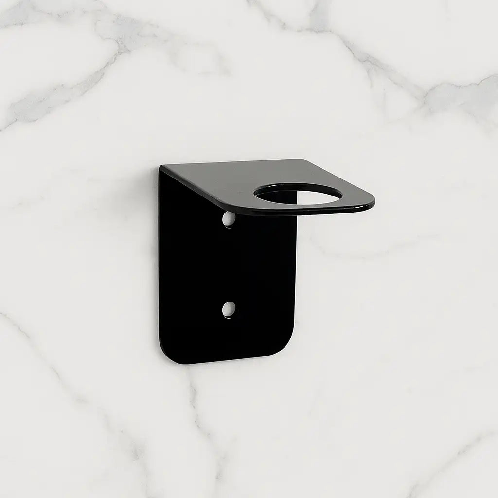 Pagamintas iš nerūdijančio plieno (2 mm storio) ir padengtas juodais matiniais dažais, šis laikiklis yra atsparus drėgmei, nerūdija ir išlieka stabilus net intensyviai naudojant.