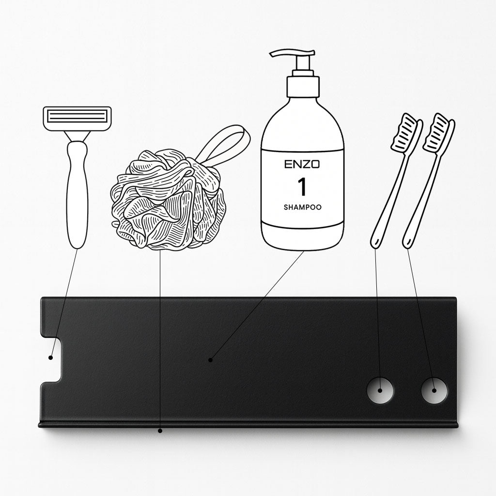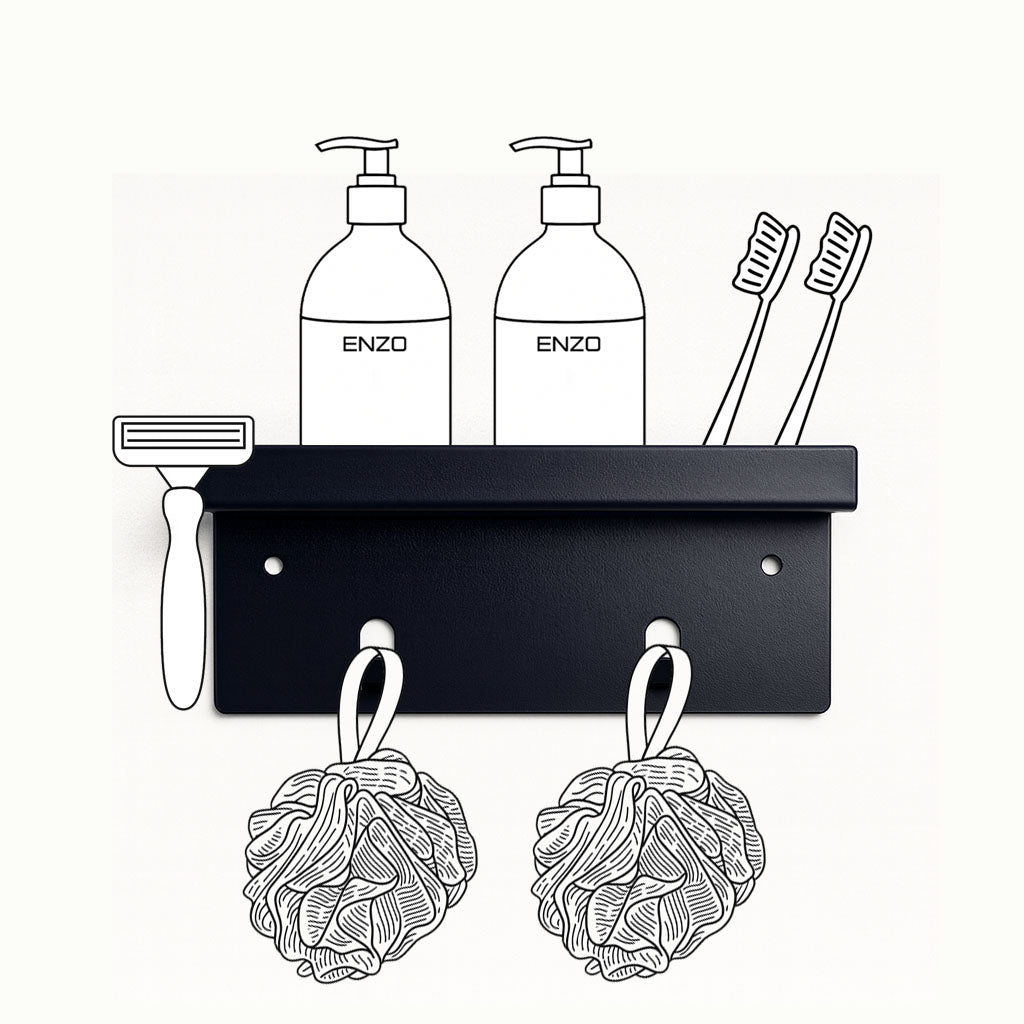 Pagaminta iš 2 mm storio 304 nerūdijančio plieno ir padengta juodais matiniais dažais, lentynėlė yra atspari drėgmei, nerūdija ir puikiai tinka tiek namams, tiek